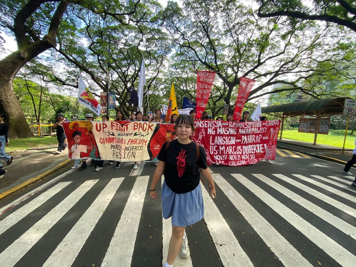 Demonstrant*innen an der University of the Philippines Diliman in Manila während des landesweiten Streiks am 21. November 2025.
