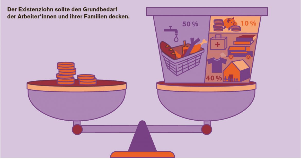 Der Existenzlohn sollte den Grundbedarf der Arbeiter*innen und ihrer Familien decken.