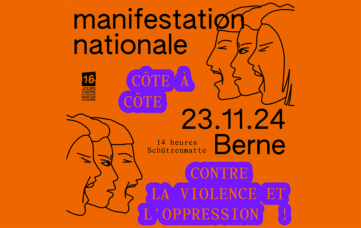 Côte à côte contre la violence et l'oppression : c'est le slogan de la campagne « 16 jours contre la violence basée sur le genre » de cette année, qui débutera par une manifestation nationale contre la violence et l'oppression patriarcales. La campagne est organisée par une alliance féministe constituée de divers services spécialisés, partis, ONG et collectifs féministes, dont fait partie Solidar Suisse. La manifestation de lancement aura lieu le samedi 23 novembre à Berne.
