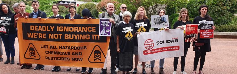Bien que ce résultat représente une grande déception, il est clair que nous avons bien secoué la conférence. C’est avec tout autant de détermination que nous poursuivrons notre lutte dans le cadre de nos projets pour une meilleure protection des travailleur·euse·s contre l’amiante.