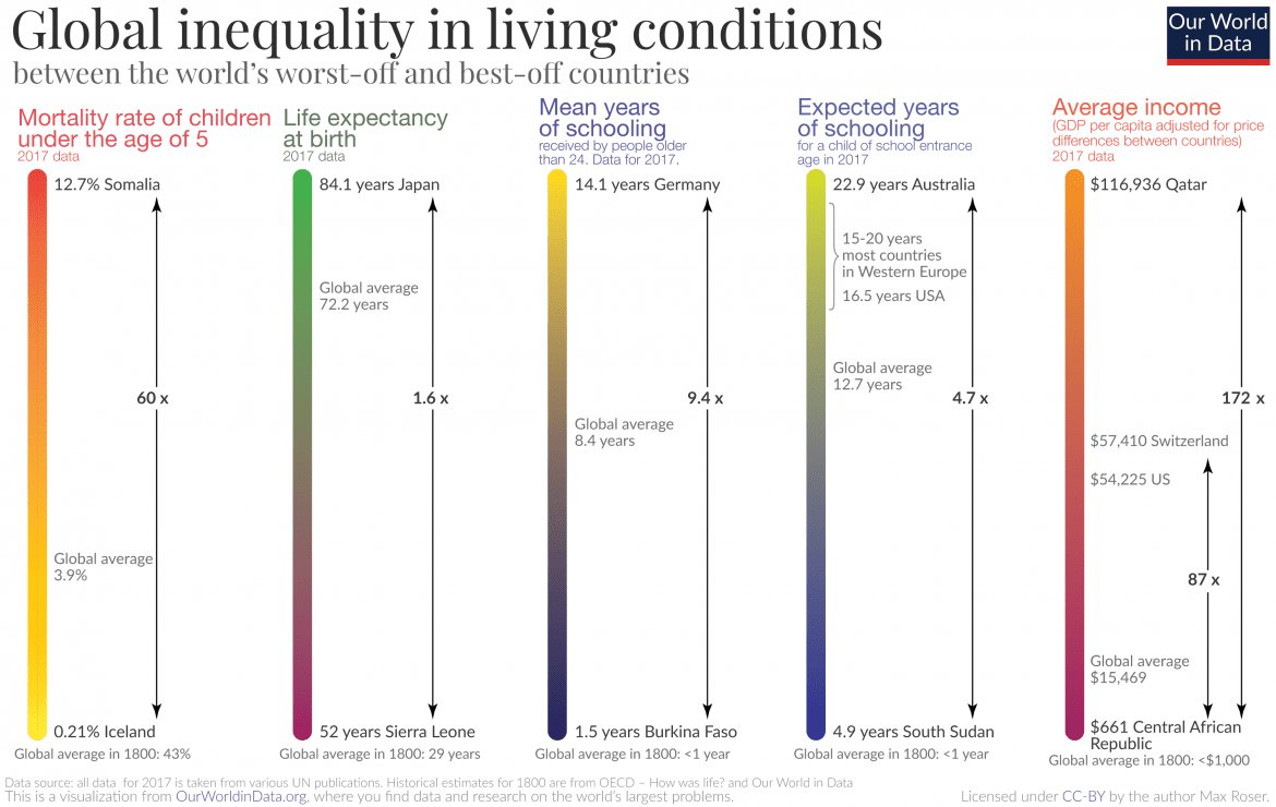 Graphique sur l'inégalité des conditions de vie dans le monde. Source : Ourworldindata.com