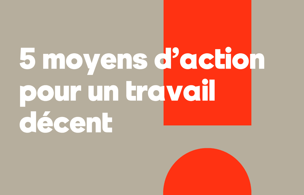 Le travail décent est un droit humain. Pourtant, des millions de personnes dans le monde n’y ont toujours pas accès. Les gouvernements et les entreprises ont la responsabilité de garantir des conditions de travail équitables, mais chacune et chacun d’entre nous peut aussi agir à son niveau. Découvrez cinq moyens d’action pour vous engager, au quotidien, en faveur de conditions de travail décentes.