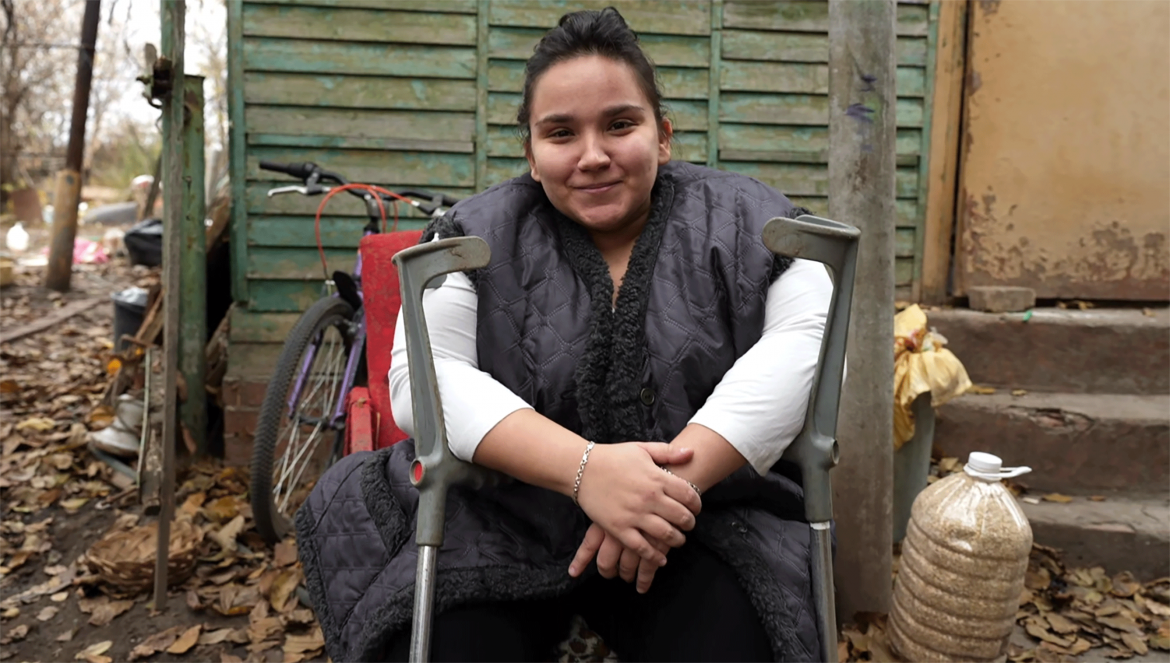 Zlata Bichuk ne baisse jamais les bras. Étudiante de 23 ans et originaire de Sloviansk, elle est née avec un spina bifida, une maladie incurable qui la contraint à utiliser un fauteuil roulant ou des béquilles. Cela ne l’empêche pas de pratiquer un sport de haut niveau. En 2021, elle est devenue championne du monde de développé couché dans sa catégorie et a reçu le titre de « Master of Sports of Ukraine » (Maître des sports d’Ukraine). En 2022, sa vie a basculé. L’invasion russe l’a forcée ainsi que sa famille à fuir et a abandonné leur maison, l’endroit où Zlata se sentait en sécurité. Les mois d’incertitude se sont alors enchaînés : la famille a dormi chez des proches, chez des étrangers, dans des hébergements temporaires. Trouver un logement accessible et adapté à Zlata était presque impossible. Leurs économies épuisées, Zlata et sa famille ont dû faire le chemin inverse et retourner dans ce qui restait de leur maison. « Le toit était endommagé, les fenêtres brisées, il y avait des taches d’humidité partout sur les murs, mais nous n’avions pas le choix. »